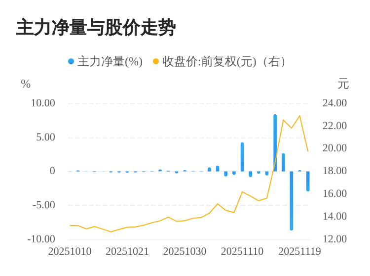 该股今日主力净量为负,且值较大,表明主力大幅流出,主动卖出明显多于主动买入。与此同时,今日换手率较高,主力抛售的嫌疑较大。投顾建议:投资者短期宜合理控制仓位,谨慎为佳。