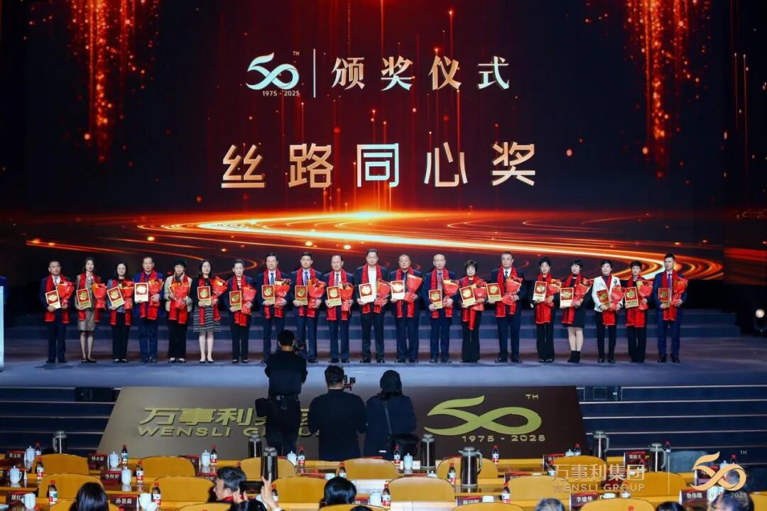 屠红燕表示,这50年是一段与时代同频共振、与伙伴一路同行、与员工共同共生的创新之路。盛典上,万事利特别向为企业发展作出重要贡献的老员工和骨干颁发了“50年50人”系列奖项。当一位位老员工走上舞台,接过沉甸甸的“金蚕奖”和“丝路同心奖”时,台下响起阵阵掌声。