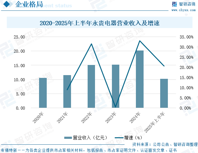 浙江永贵电器股份有限公司主营业务为电连接器、连接器组件及精密智能产品的研发、制造、销售和技术支持,公司目前已形成轨道交通与工业、车载与能源信息、特种装备三大业务板块,主要对应下游领域分别是轨道交通、工业、新能源汽车及充电、通信等。公司轨道交通与工业板块产品主要有:连接器、门系统、计轴系统、贯通道、电池系统、受电弓等,主要应用在铁路机车、客车、高速动车、城市轨道交通车辆、磁悬浮等车辆及轨道线路上;配套供应于中国中车集团、中国国家铁路集团有限公司以及建有轨道交通的城市地铁运营公司。公司工业产品主要有连接器、工业机器人电机用编码以及动力圆形连接器、工业机器人底座控制柜及盘间线运用、变桨柜、主控柜等,主要应用在工业机器人及风电产品上。公司车载与能源信息板块产品包括高压连接器及线束组件、mini-FAKRA、车载以太网连接器、高压分线盒(PDU)/BDU、充/换电接口及线束、交/直流充电枪、大功率液冷直流充电枪、通讯电源/信号连接器、储能连接器、高速连接器等,其中车载产品为新能源汽车提供综合互联系统的整体解决方案。公司特种装备板块产品包括特种圆形电连接器、微矩形电连接器、射频连接器、光纤连接器、流体连接器、机柜连接器、深水连接器、岸电及充电产品系列、水下机器人连接器以及其它特殊定制开发的特种连接器及其相关电缆组件等。据统计,2025年上半年,永贵电器营业收入为10.27亿元,同比增长20.65%。