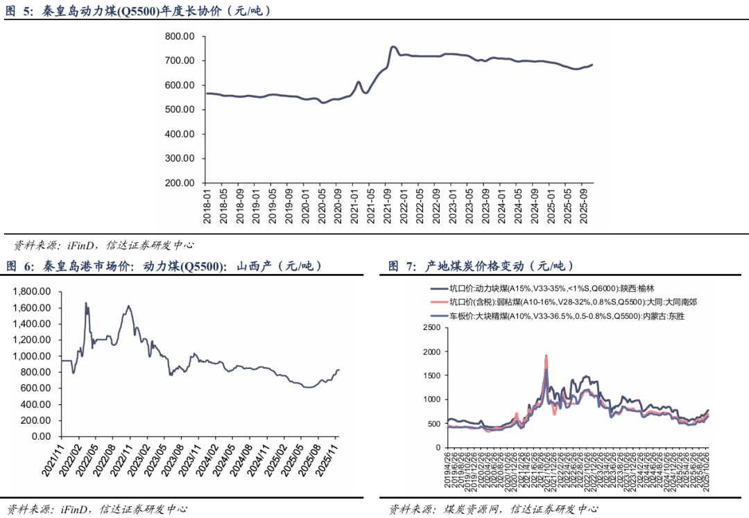 ● 长协煤价格:11月,秦皇岛港动力煤(Q5500)年度长协价为684元/吨,月环比上涨8元/吨。
