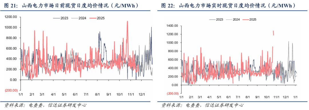 ⚫山西日前现货市场:截至11月21日,山西电力日前现货市场的周度均价为189.78元/MWh,周环比下降34.00%,周同比下降45.5%。
