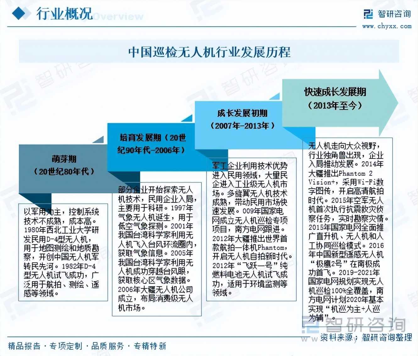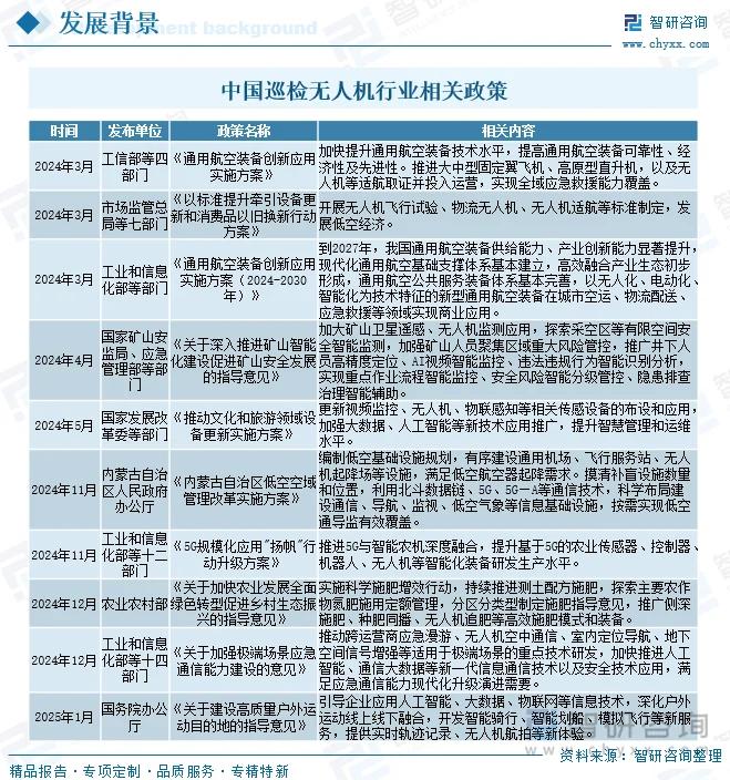 注:本文节选出自智研咨询发布的《2025年中国巡检无人机行业发展历程、市场政策、产业链图谱、供需现状、市场规模、竞争格局及发展趋势研判:能源电力领域需求占比超50%[图]》行业分析文章,如需获取行业文章全部内容,可进入智研咨询搜索查看。
