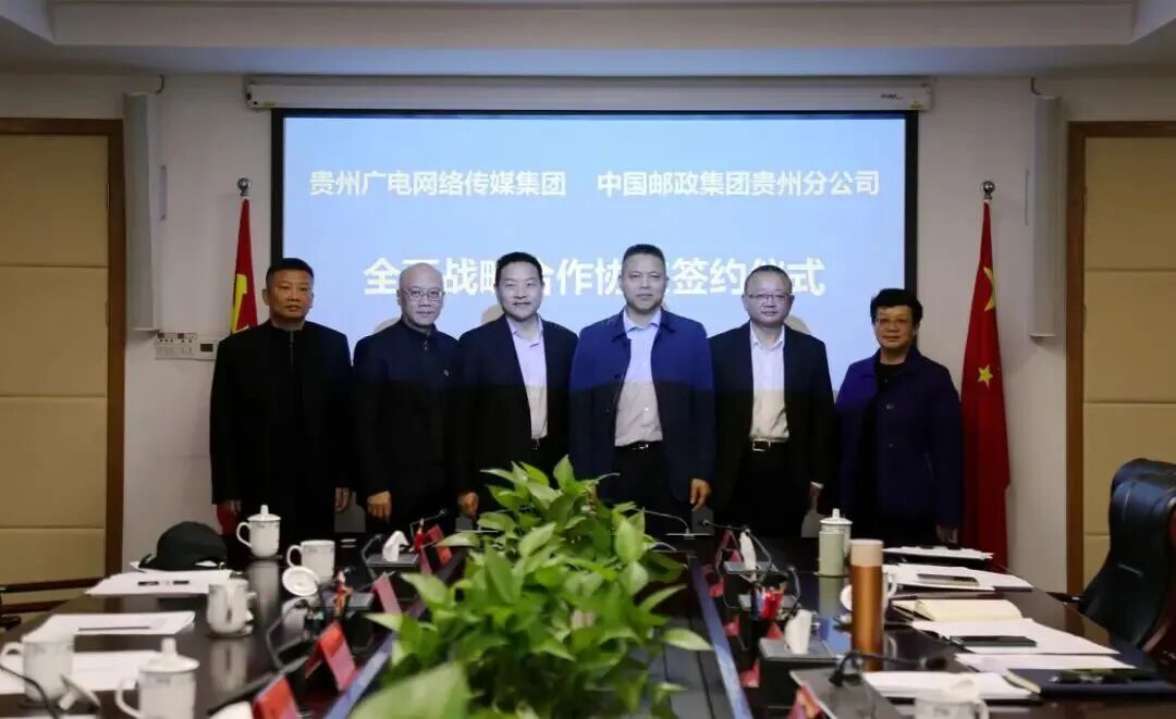 11月17日,贵州广电网络(维权)传媒集团与中国邮政集团贵州省分公司战略合作协议签约仪式在贵阳举行。省委宣传部副部长,集团党委书记、董事长何云江,中国邮政集团贵州省分公司党委书记、总经理董文出席并致辞。会议由集团党委副书记、副董事长、总经理李筑主持。中国邮政集团贵州省分公司党委委员、副总经理万卫民、阚敬斌,集团党委委员、总会计师王卉参加。