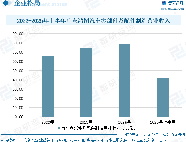 广东鸿图科技股份有限公司业务主要包括精密轻合金零部件成型制造和汽车内外饰产品制造两大业务板块。在精密轻合金零部件成型制造业务中,公司致力于精密铝/镁合金零部件的设计、制造、生产、销售与售后服务,产品适用于燃油汽车、混动汽车、新能源汽车以及通讯和机电行业。在汽车内外饰产品制造业务中,公司全资子公司宁波四维尔主要从事汽车内外装饰产品的设计、研发、生产、销售与售后服务,产品适用于燃油汽车、混动汽车、新能源汽车。数据显示,2025年上半年,广东鸿图汽车零部件及配件制造营业收入为41.99亿元,同比增长18.48%。