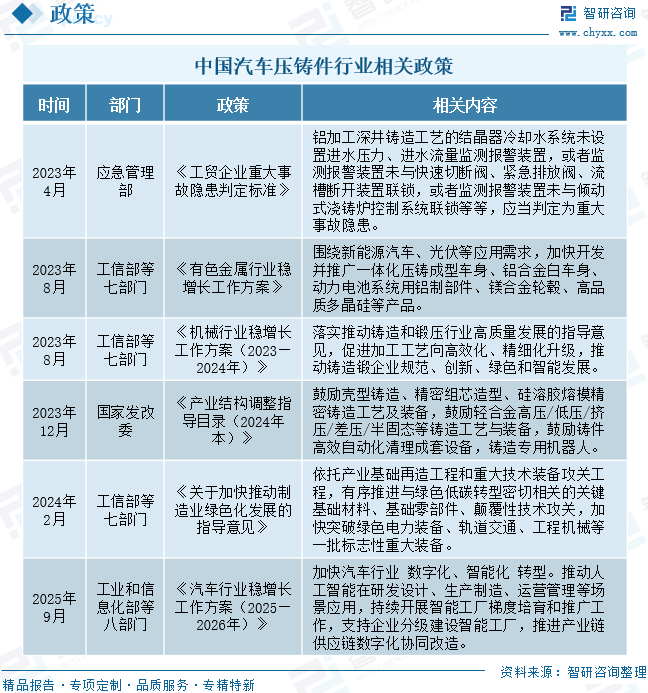 汽车压铸件行业政策