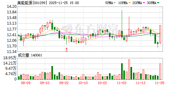 证券时报·数据宝统计,截至发稿,美能能源收盘价为13.00元,上涨9.98%,本期筹码集中以来股价累计上涨3.26%。具体到各交易日,5次上涨,6次下跌,其中,涨停2次。
