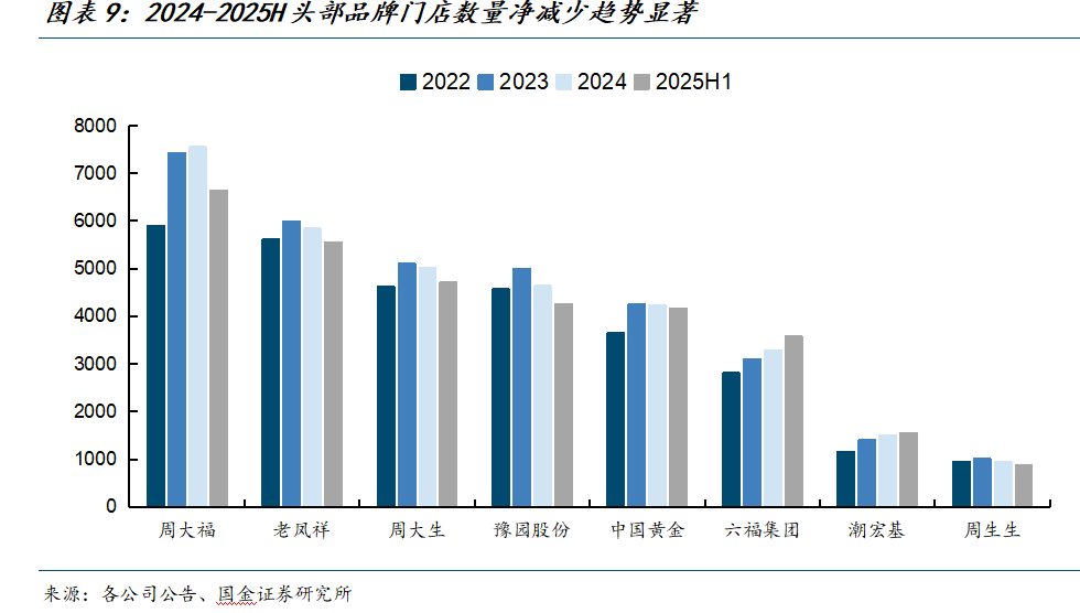 “价升量跌”趋势下,以克重为销售锚点的卖金“渠道型”业务模型难以获得增长,多家龙头企业策略转向,不断优化低效率门店。从开关店情况来看,传统开店龙头周大福、老凤祥、周大生等2024年度均出现明显闭店趋势,随着黄金珠宝渠道数量竞争态势开始降温,头部企业开始注重产品创新,产品工艺创新成为核心竞争要素。