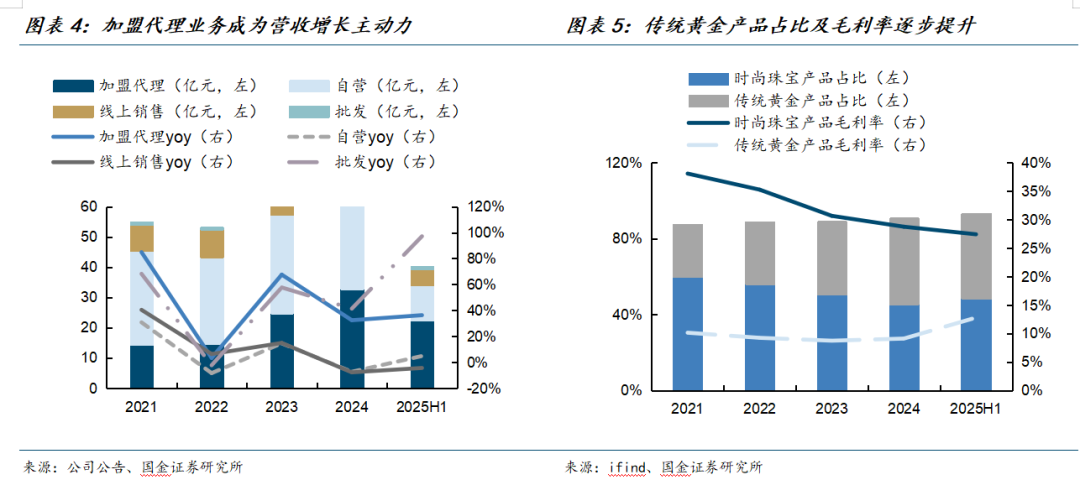 1.3 主营业务:黄金产品占比提升,加盟模式快速拓展