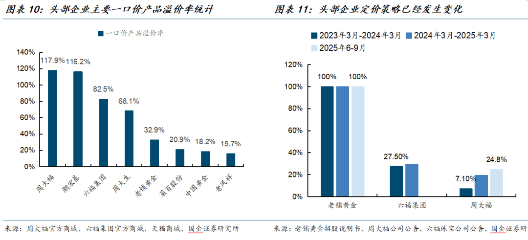 悦己消费趋势下,黄金饰品的情感价值超越功能刚需,优质设计及工艺的定价能力显著提升,背后锚定的是品牌效应。黄金饰品由克重计价向一口价转变,本质是消费者从此前的为“功能满足”付费,转而向产品所带来的“价值共鸣”付费,产品的工艺设计的价值得到越来越多的市场认可,而这种认可将逐步积累至品牌自身的消费者美誉度及信任度。
