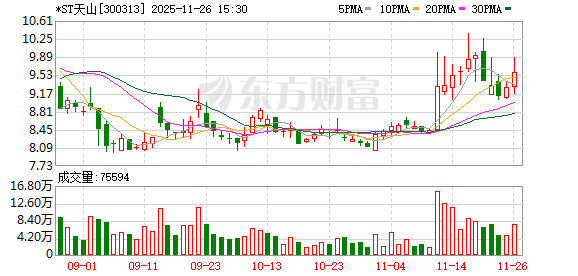 *ST天山11月26日大宗交易平台出现一笔成交,成交量25.00万股,成交金额278.75万元,大宗交易成交价为11.15元,相对今日收盘价溢价16.39%。该笔交易的买方营业部为中信建投证券股份有限公司北京东城分公司,卖方营业部为平安证券股份有限公司北京金融大街证券营业部。