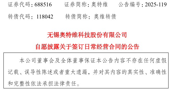 11月26日,奥特维发布无锡奥特维科技股份有限公司自愿披露关于签订日常经营合同的公告 。