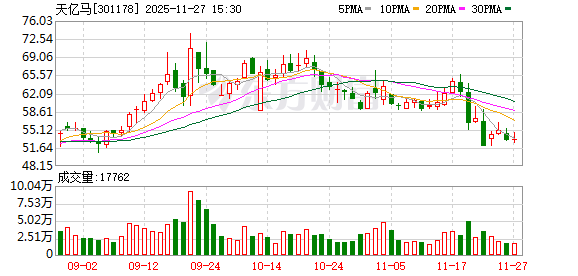 但市场似乎对这次整合并不看好。公告次日,天亿马股价下跌9.52%,收于56.37元/股,截至26日午间收盘,股价跌至53.32元/股。