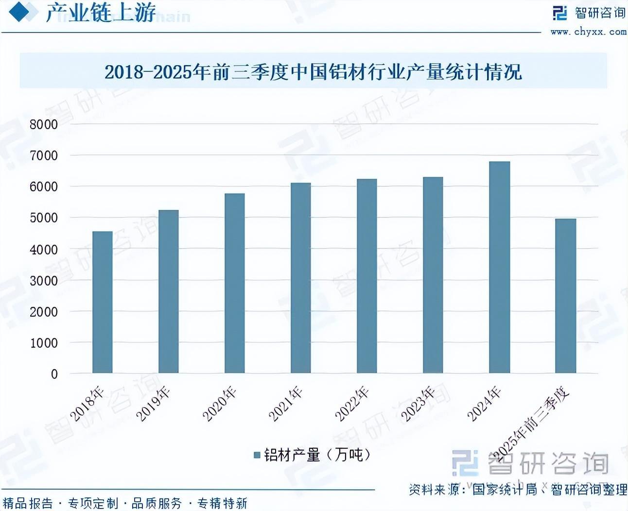 铝材是安检门的原材料之一,主要用作机壳和内部结构框架,用于支撑设备硬件和保护电路系统。近年来,我国经济已由高速增长阶段转向高质量发展阶段,国家实施供给侧结构性改革,不断淘汰落后产能和关停违规、环保不达标产能,以设置产能上限方式严控新增电解铝产能,行业格局得到优化,有效改善了市场供需状况,对铝行业有序、健康发展起到了积极作用。随着我国经济迅速发展和铝加工行业高新技术的不断突破,我国铝冶炼及加工行业得到快速发展,同时,在汽车轻量化及建筑、家电、电子电力等行业的发展的带动下,铝材的需求也稳步上升。在原料供给充足,需求不断增长的背景下,我国铝材产量也随之稳步增长。数据显示,中国铝材产量从2018年的4554.6万吨增长至2024年的6783.1万吨,年复合增长率为6.86%。2025年前三季度,铝材产量为4976.8万吨,同比持平。铝材产量的稳步增长,为下游安检门行业提供了充足的原料供应和稳定的成本保障。