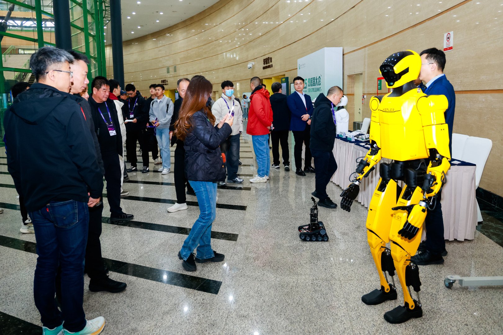 而在汉威科技展位旁边,还有一台开普勒工业场景机器人面对来往人群打招呼。据介绍,该机器人负载能力达到30公斤,并可轻松适应仓储物流等重负荷工作场景,得益于滚柱丝杠直线执行器的使用,该机器人落点误差控制在毫米级,适合精密操作。