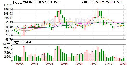 国光电气12月1日大宗交易平台出现一笔成交,成交量2.50万股,成交金额200.00万元,大宗交易成交价为80.00元,相对今日收盘价折价7.83%。该笔交易的买方营业部为华泰证券股份有限公司深圳深南大道基金大厦证券营业部,卖方营业部为华泰证券股份有限公司成都锦晖西二街证券营业部。