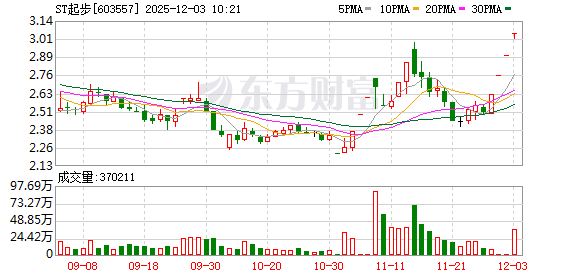 ST起步盘中涨停,已连收4个涨停板,截至9:26,该股报3.05元,换手率0.12%,成交量73.41万股,成交金额223.90万元,涨停板封单金额为1.26亿元。连续涨停期间,该股累计上涨22.00%,累计换手率为2.00%。最新A股总市值达19.01亿元。
