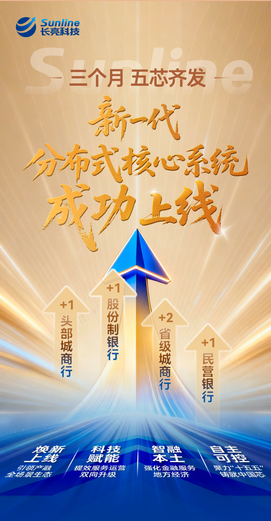 近三个月内,长亮科技助力五家银行成功上线新一代分布式核心系统(以下简称:新核心系统),为全国性股份制银行、区域银行的数智化转型树立了标杆典范。新核心系统展现出良好的稳定性与扩展性,处理效率与业务支撑能力得到有效提升,为银行夯实服务实体经济的数字金融基座注入了核心动能。
