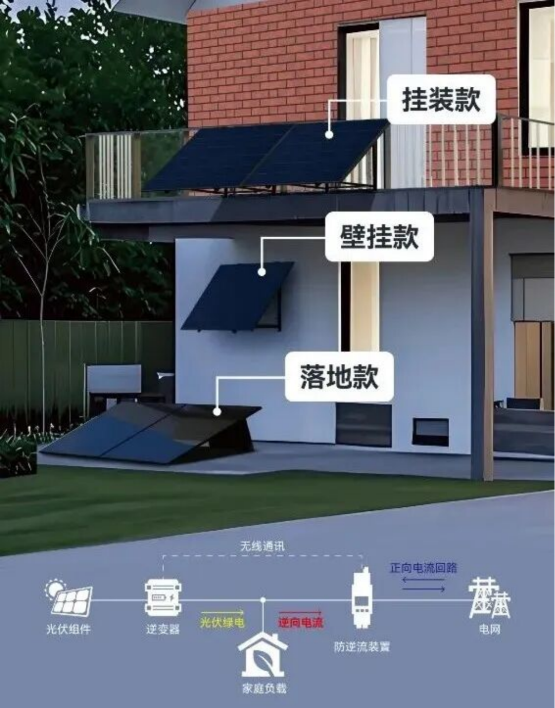 光点全球首发“PLC防逆流阳台光伏系统”,配备PLC防逆流微逆、防逆流电表控制光伏组件功率输出,自动匹配家庭用电设备实时功率。系统模块化设计,适配各类阳台栏杆、外墙,即插即用,可快速安装,也可随时拆装带走。