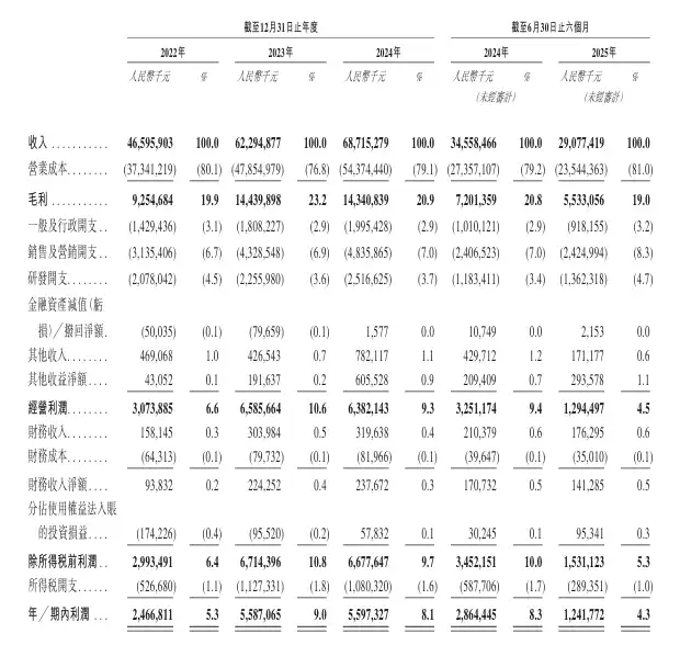 于2022年-2024财年,利润分别为24.67亿元、55.87亿元及55.97亿元;今年上半年,利润同比减少56.65%至12.42亿元。