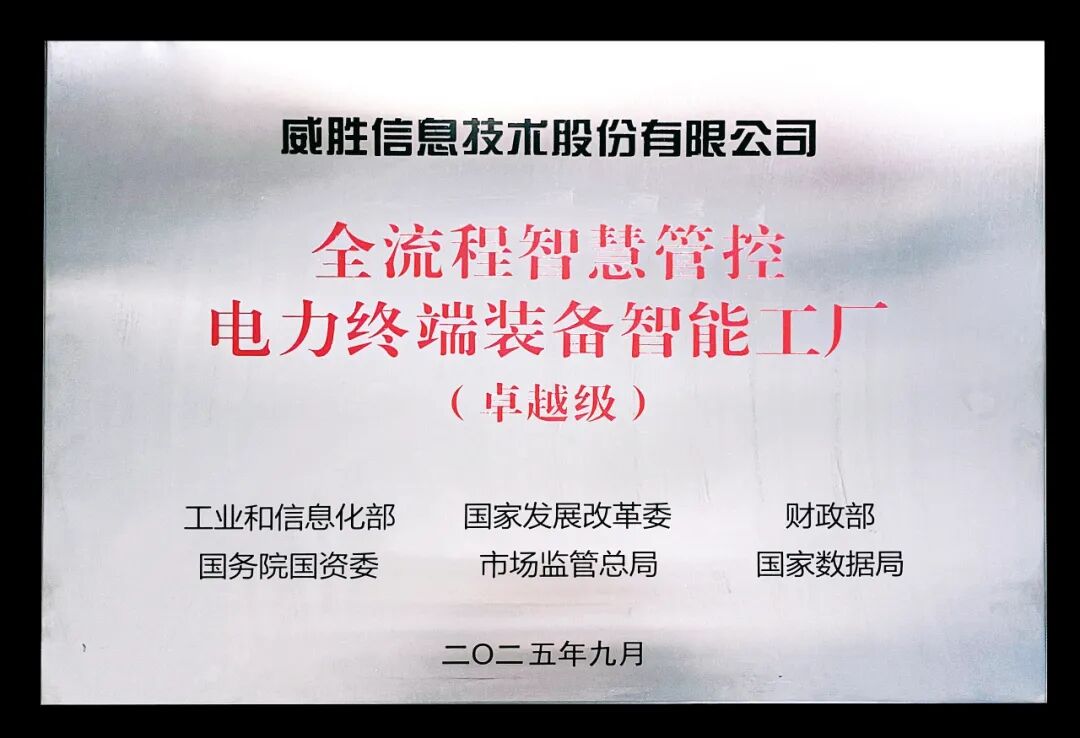大会现场还举行了授牌仪式,威胜信息再添一项国家级重磅荣誉,被授予“2024-2025国家卓越级智能工厂”,不仅标志着威胜信息的数字化制造能力达到行业领先水平,也为整个能源物联网装备领域的智能化转型树立了崭新标杆。