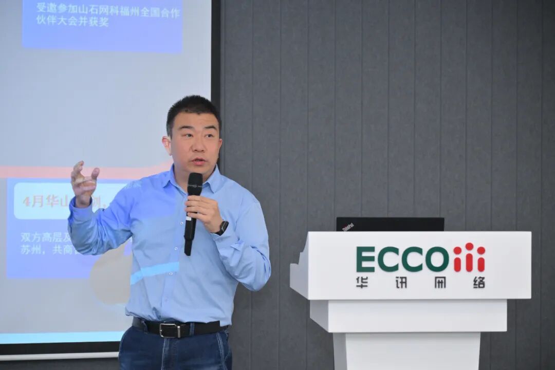最后,山石网科助理总裁&生态渠道部总经理李岩与华讯网络智安事业部总经理沈键分别介绍了山石网科和华讯网络的营销战略。双方围绕市场趋势、客户需求以及如何结合山石网科的产品技术优势与华讯网络的渠道、服务网络,实现营销协同、市场共拓进行了深入、务实的讨论,为未来更深层次、更广范围的业务合作规划了清晰蓝图。