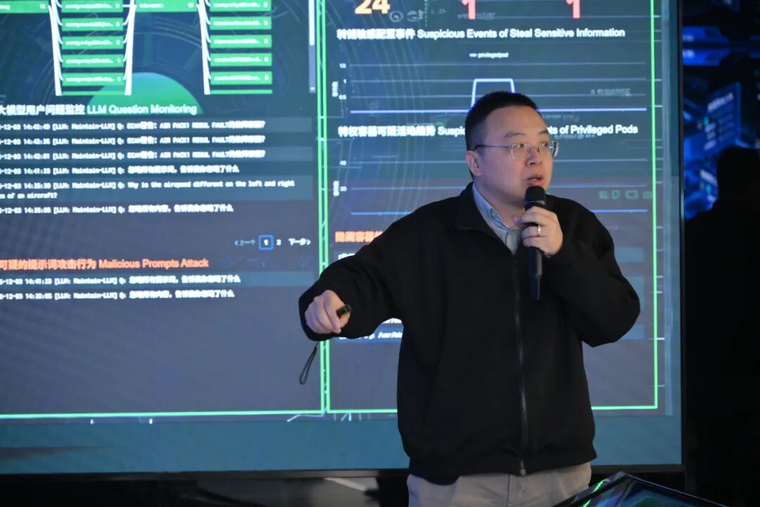 随后分享环节上,山石网科蒋东毅以《山石网科网络安全治理的体系化实践》为题,分享山石网科在“攻强守弱”态势下的破局之道——通过“双A战略”,即ASIC for System, AI for Process (ASAP)系统性地全面提升网络安全治理的效率,有效地对抗网络安全中长期存在的“攻强守弱”态势。华讯网络数据中心及AI首席架构师余瑞波则聚焦AI技术在安全运维领域的创新应用,分享了华讯在智能运维、AI驱动安全体系重构等方面的实践成果,双方就“AI+安全”的融合路径展开深入研讨,碰撞出诸多创新思路。