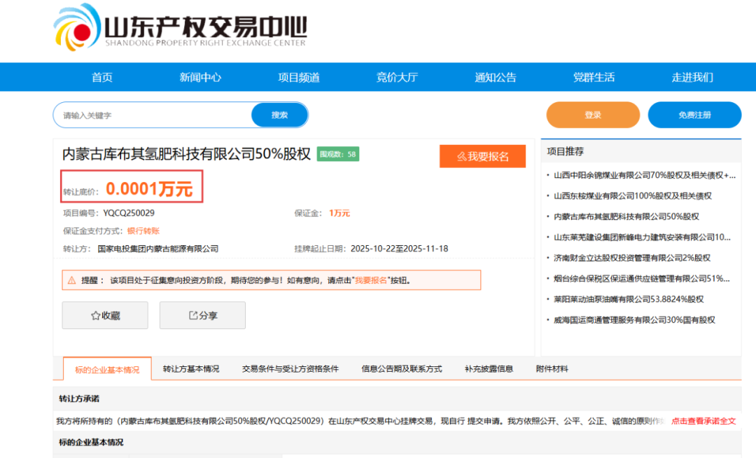 ▼ 10月22日国家电投1元“甩卖”