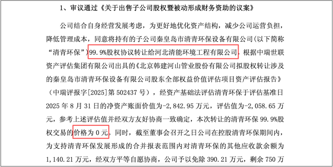尽管代价不菲,但对于2025年上半年归母净利润仅637.61万元的韩建河山而言,剥离这一持续亏损的资产仍利大于弊。