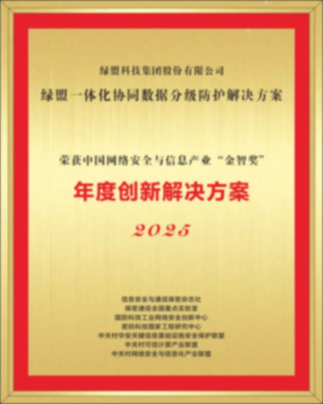 近日,2025年度(第九届)中国网络安全与信息产业“金智奖”(以下简称“金智奖”)评选结果正式揭晓,绿盟一体化协同数据分级防护解决方案荣获“2025年度创新解决方案”。