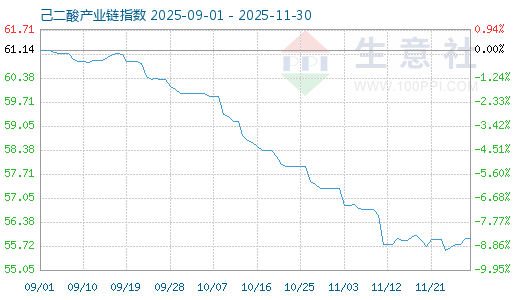 12月4日生意社己二酸产业链指数为56.01,较昨日上升了0.02点,较周期内最高点118.77点(2021-10-19)下降了52.84%,较2016年01月27日最低点50.35点上涨了11.24%。(注:周期指至今)