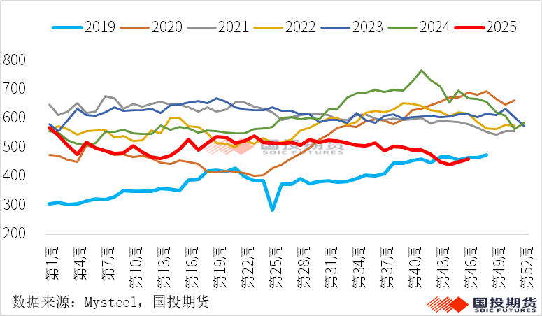 硅铁情况和硅锰类似,供应端开始减产时间较晚,虽然产量已经下行至季节性低点,但是需求端的疲弱依旧需要供应端更大幅度的减产才能匹配。