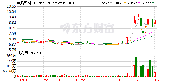 国风新材再度涨停,5个交易日内录得3个涨停,累计涨幅为19.66%,累计换手率为99.68%。截至9:35,该股今日成交量5017.48万股,成交金额4.51亿元,换手率5.60%。最新A股总市值达81.80亿元,A股流通市值81.80亿元。