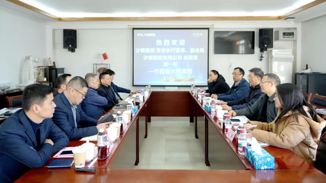 12月4日,沙钢集团常务执行董事、副总裁、沙钢钢铁有限公司总经理施一新,沙钢物资贸易有限公司总经理袁华东,沙钢总工程师办公室副主任李冉、孟静,沙钢物贸市场营销处处长助理裴佑振等来访大明。