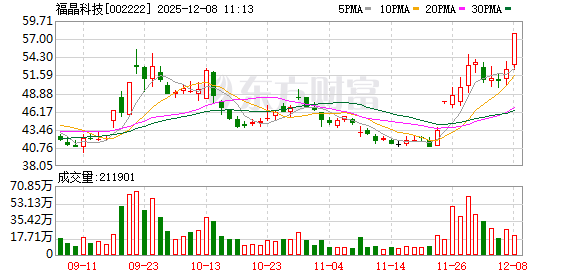 福晶科技股价创出历史新高,截至9:39,该股上涨7.77%,股价报56.60元,成交量904.77万股,成交金额4.97亿元,换手率1.93%,该股最新A股总市值达266.16亿元,该股A股流通市值264.97亿元。