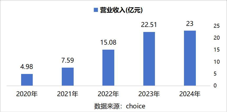 2020-2024年期间,海安集团营业收入保持高速增长,期间年复合增速达46.60%,并且增长特别稳健,每年都有业绩提升。