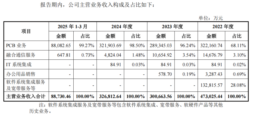 公司主营业务为印制电路板(PCB)产品的设计研发、生产制造及销售。产品主要包括HDI、多层板、软硬结合板和其它个性化定制PCB等,广泛应用于通讯设备、消费电子、光模块、服务器和数据存储、汽车电子、数字能源及工控医疗等领域。