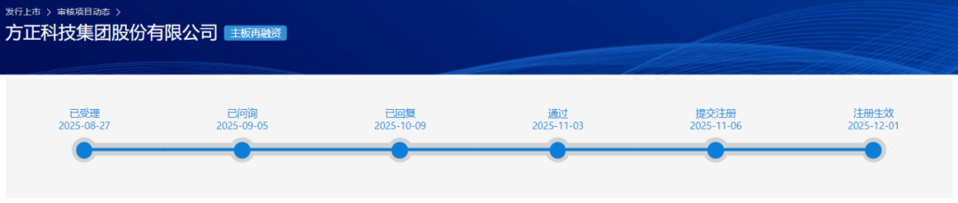 近日,上交所官网披露,方正科技集团股份有限公司(以下简称“方正科技”)向特定对象发行A股股票的申请已注册生效。