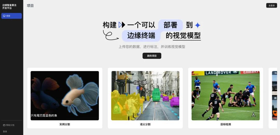 平台支持多种视觉任务,例如图片与视频的分类、检测,以及图像分割、语义分割等,并可以灵活选配不同参数和类别的模型。在自研边缘终端的基础上,平台可适配市场主流终端设备,解决数据、模型、部署终端割裂的问题,真正实现端到端的项目开发场景闭环。