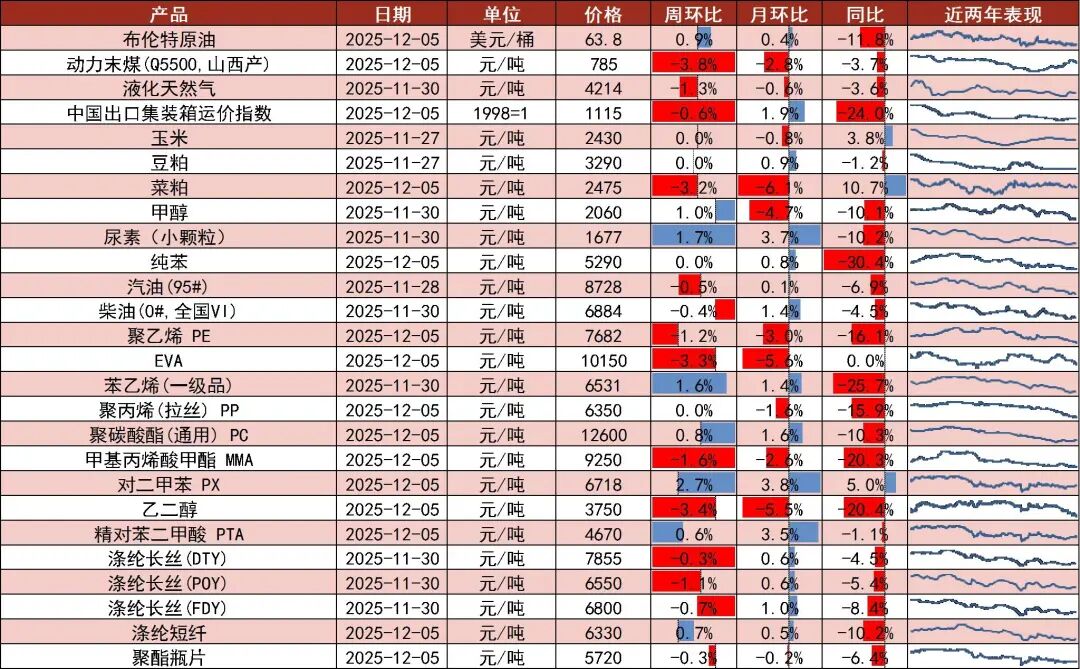 本周基础化工、新材料均上涨。本周(20251201-20251205)沪深300涨跌幅为1.28%,上证指数涨跌幅为0.37%,创业板指涨跌幅为1.86%。涨幅前三行业分别是有色金属(5.35%)、通信(3.69%)、国防军工(2.82%)。