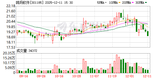 证券时报·数据宝统计,截至发稿,鸥玛软件收盘价为18.81元,下跌2.54%,本期筹码集中以来股价累计下跌9.13%。具体到各交易日,3次上涨,6次下跌。