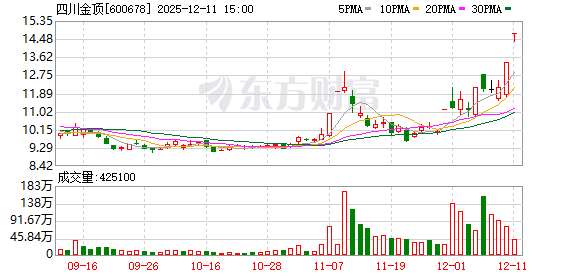 四川金顶(600678)今日涨停,全天换手率12.18%,成交额6.25亿元,振幅3.01%。龙虎榜数据显示,营业部席位合计净买入8913.77万元。