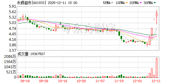 永辉超市(601933)今日上涨6.12%,全天换手率21.34%,成交额103.02亿元,振幅15.15%。龙虎榜数据显示,机构净卖出3.95亿元,沪股通净买入1.00亿元,营业部席位合计净卖出3332.12万元。