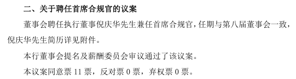 12月11日,江阴银行召开第八届董事会2025年第二次临时会议,通过相关议案,聘任倪庆华兼任首席合规官,任期与第八届董事会一致。