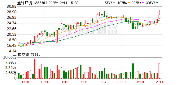 证券时报·数据宝统计显示,通源环境今日收盘价为27.80元,上涨6.11%,日换手率为5.81%,成交额为2.15亿元,全天主力资金净流入376.99万元,近5日该股累计上涨16.17%,近5日资金合计净流入1724.50万元。