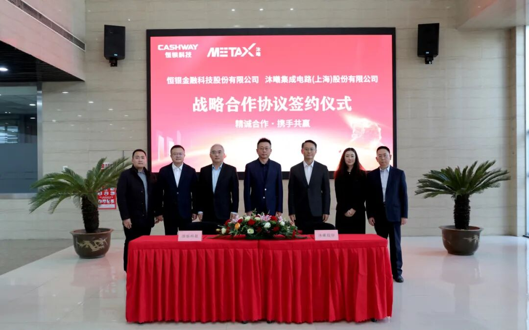 12月11日,恒银金融科技股份有限公司(简称“恒银科技”)与沐曦集成电路(上海)股份有限公司(简称“沐曦股份”)签署战略合作协议,深度挖掘国产GPU在多元场景中的巨大应用潜力,为国产算力生态的优化升级注入新动能。恒银科技党委书记、董事长江浩然,执行总裁张云峰,沐曦股份高级副总裁孙国梁、BD副总裁白云等出席签约仪式。