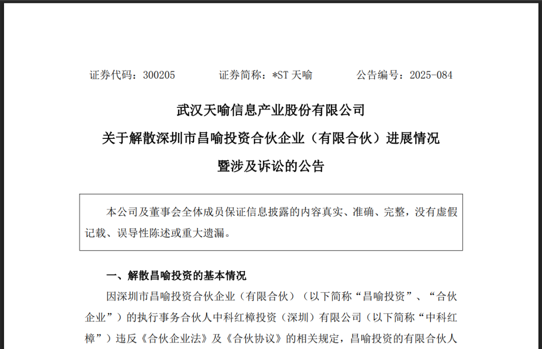 根据天喻信息披露的司法材料,中科红樟已向深圳市福田区人民法院递交起诉状,称其未收到任何除名通知,相关决议影响其合法投资权益,因此请求确认除名无效,并要求相关主体承担诉讼费用。案件尚待开庭审理。