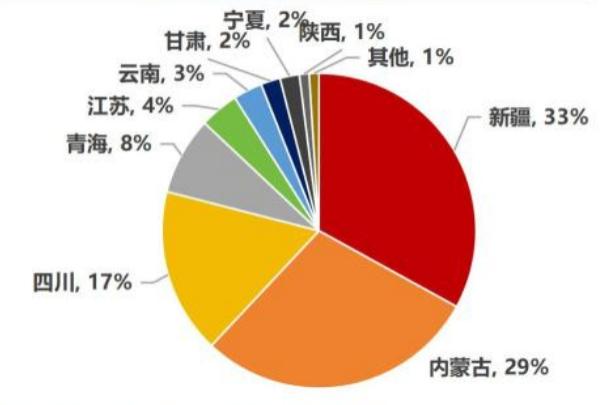 按地区计算,截止2023年,新疆、内蒙古、四川和青海位列产能前四(33%、29%、17%、8%),合计占比87%。