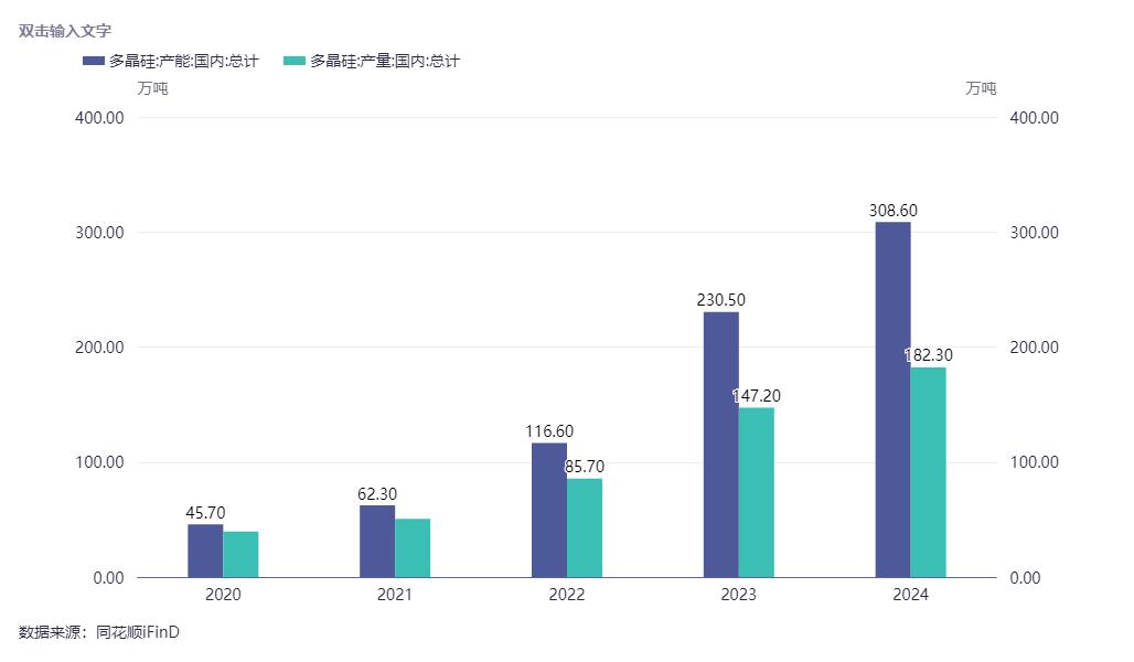 同花顺IFIND数据显示,截止2024年,目前国内多晶硅总产能约300万吨,产量约180万吨。