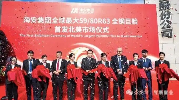 就在近日,海安橡胶莆田工厂又将一条63寸的巨型胎发往美国市场。