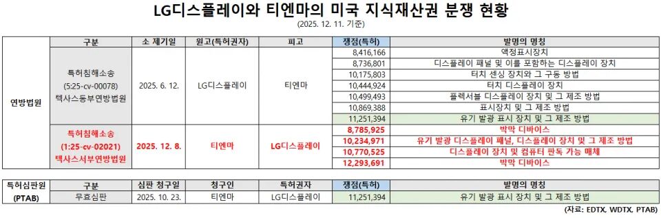 此次诉讼是对 LG 显示此前行动的反制:今年 6 月,LG 显示以侵犯 7 项 LCD 与 OLED 相关专利为由,向美国得克萨斯州东部联邦法院起诉天马,并表示双方自 2015 年起便进行专利授权谈判但未达成一致。此后,天马于 10 月针对 LG 显示指控的 7 项专利中的 1 项(专利号 11,251,394),向美国专利审判和上诉委员会(PTAB)提出无效宣告请求(IPR)。根据美国相关法律,若在专利侵权诉讼受理后 1 年内提出无效宣告请求,联邦法院审判庭可参考该委员会的审查结果。业界推测,天马后续大概率将对剩余 6 项专利继续提出无效宣告请求。
